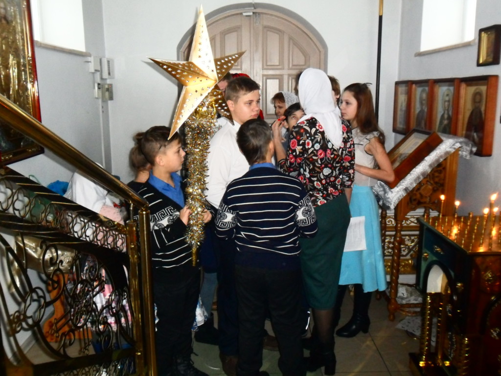 В этом году ребята из воскресной школы потрудились особенным образом. Весь Рождественский пост они готовились к необычному спектаклю, посвященному Рождеству Христову, учили колядки и песнопения. А необычность состояла в том, что для представления ребята изготовили вручную кукол-персонажей, которыми им предстояло управлять. Спектакль был показан родителям и прихожанам храма. Так же состоялся «выездной» показ в стенах детского сада поселка.